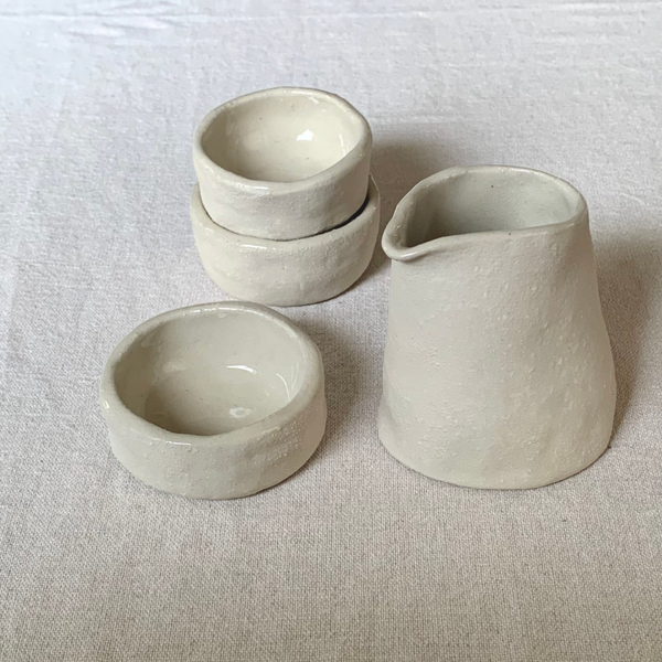 3 Stück Dekorations-Schüsseln aus hellem rustikalen Ton