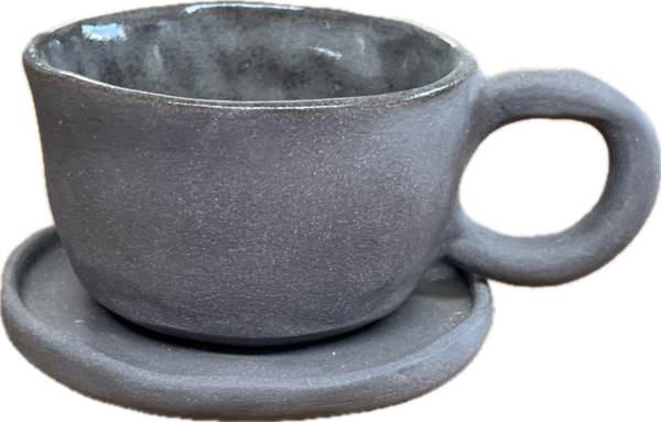 Dekorations-Tasse aus schwarzem Ton mit rundem Henkel.